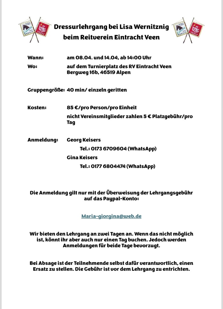 Der Reitverein Eintracht Veen e.V. wird vertreten durch: