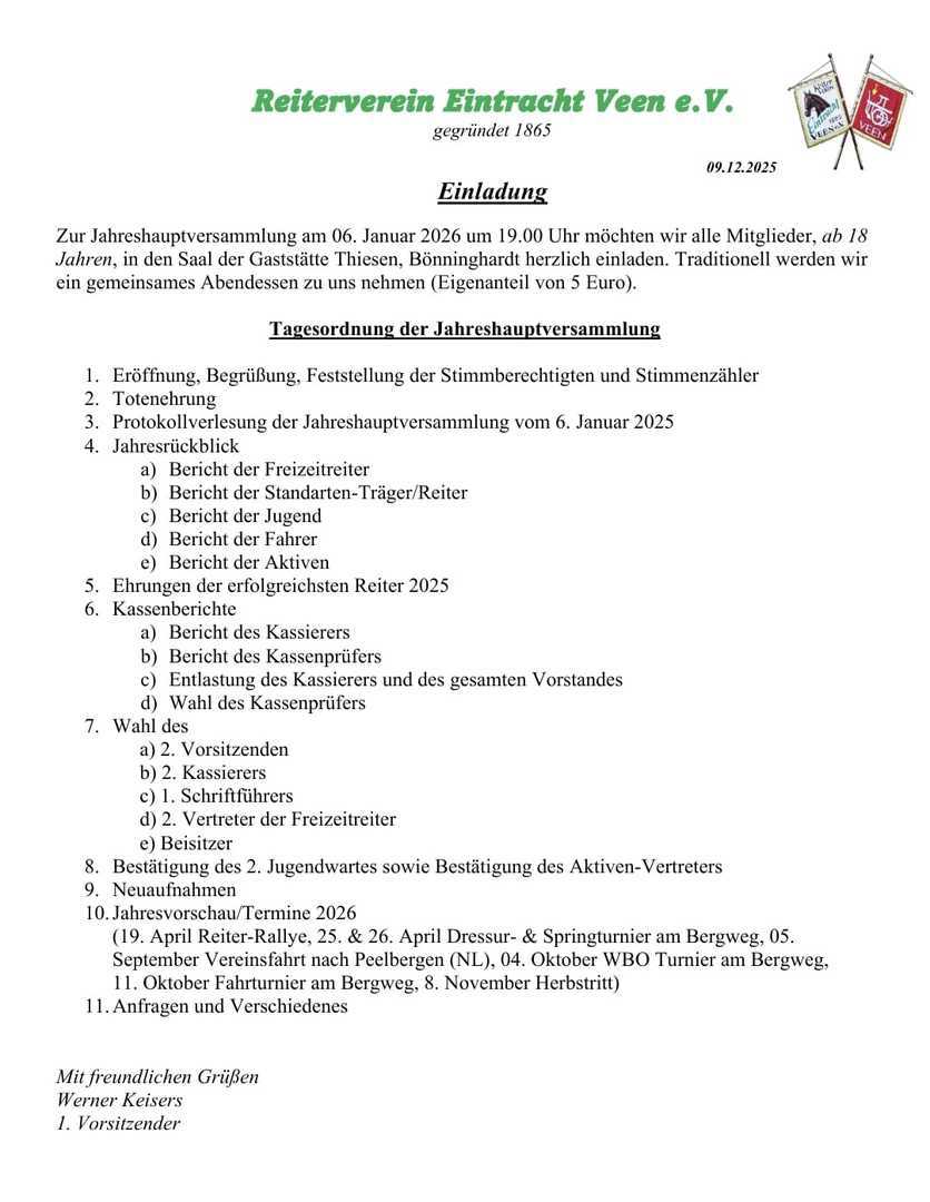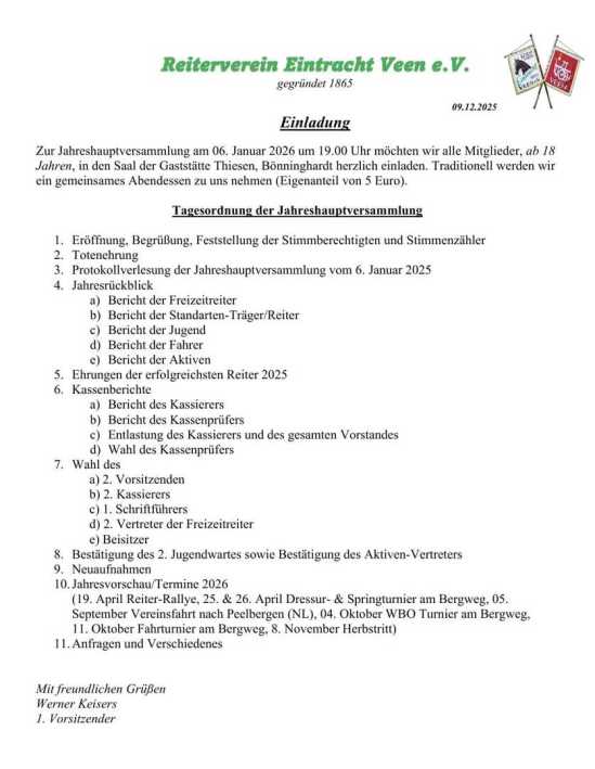 Der Reitverein Eintracht Veen e.V. wird vertreten durch: