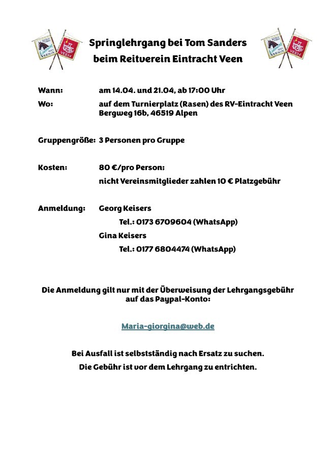 Der Reitverein Eintracht Veen e.V. wird vertreten durch: